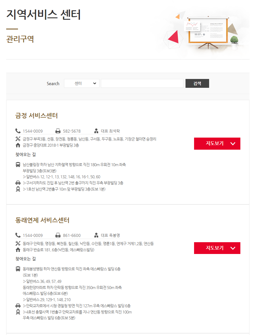 가까운 지역서비스 센터는 홈페이를 통해 간편하게 확인이 가능합니다.