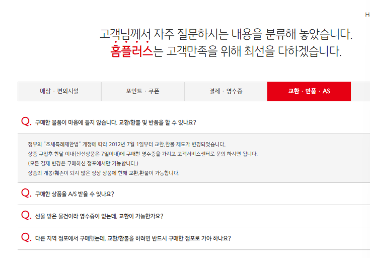 1. 홈플러스 구매한 물품을 교환하고 싶다면?